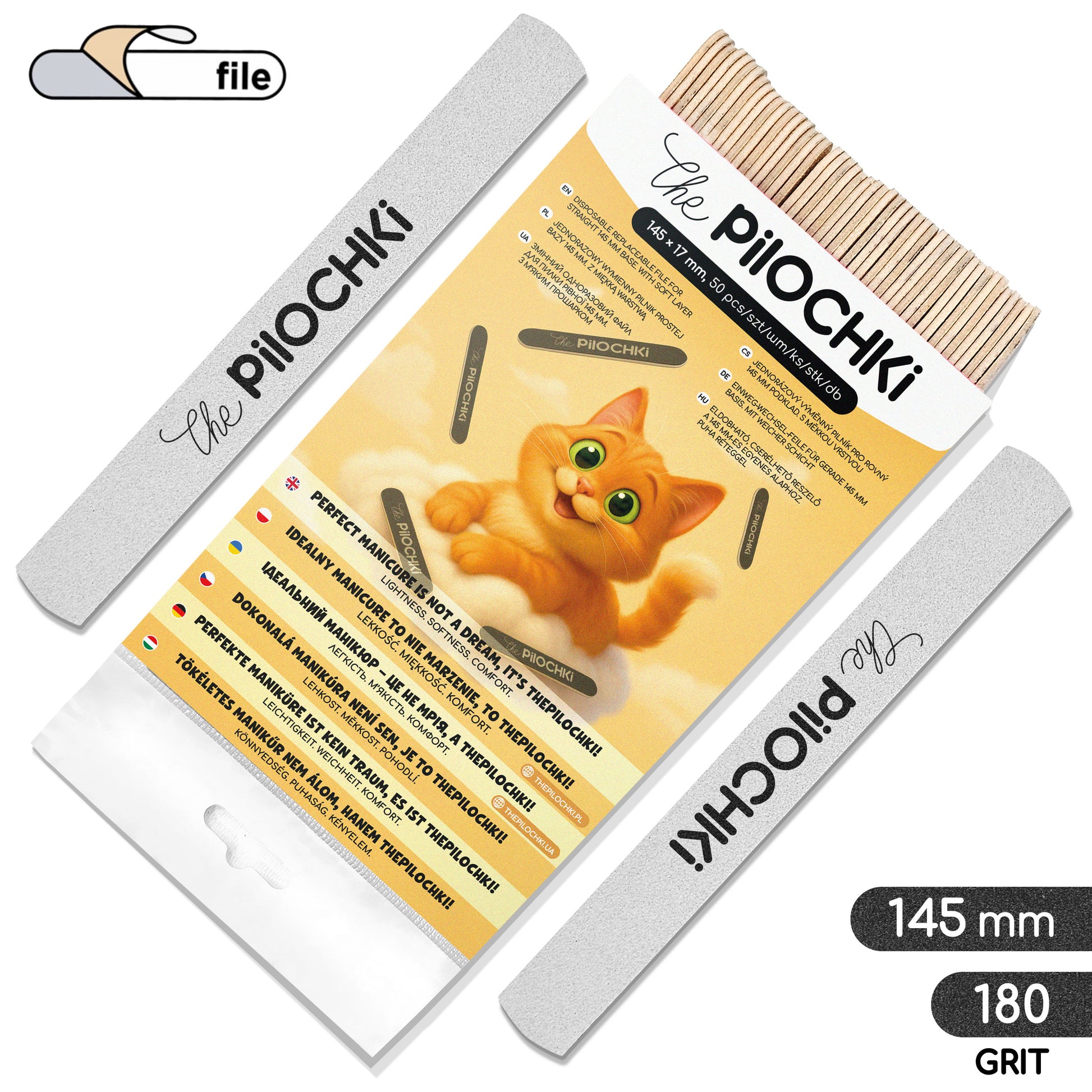 Wymienne pilniki proste 145 mm na miękkiej bazie, białe, 180 grit, 50 szt.
